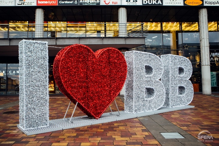 „I love BB” – taki napis świetlny został uruchomiony w Mikołajki o godz. 10.00 na placu przez Galerią Sfera II, przy figurach Bolka i Lolka. Wysoka na 2,5 metra i szeroka na 7 metrów iluminacja będzie stanowić dodatkową świąteczną atrakcję, która, tak jak w wielu innych tego typu miejscach na świecie, ma szansę przyciągnąć uwagę mieszkańców i turystów.
