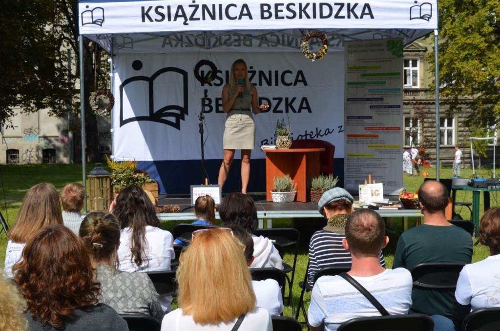 W sobotę – 14 września 2019 r. Książnica Beskidzka zorganizowała Piknik Rodzinny: „Od słowa do zdrowia: żyj aktywnie z biblioteką”. Podczas trwanie pikniku przygotowaliśmy moc atrakcji dla wszystkich gości. Odbyły się dwa spotkania autorskie z Magdaleną Makarowską oraz Adamem Kasperkiem. Tematem spotkań było zdrowe odżywianie oraz wykorzystanie drzew i kwiatów w kuchni. Po prelekcjach odbywały się warsztaty kulinarne, prowadzone prze zaproszonych gości. Na pikniku nie zabrakło atrakcji dla najmłodszych uczestników: warsztaty ekologiczne, malowanie twarzy, koło fortuny, gry i zabawy ruchowe, które cieszyły się dużym zainteresowaniem dzieci i dorosłych. Piknik, będący częścią projektu : „Od słowa do zdrowia: żyj aktywnie z biblioteką” dofinansowano ze środków Ministra Kultury i Dziedzictwa Narodowego pochodzących z Funduszu Promocji Kultury.